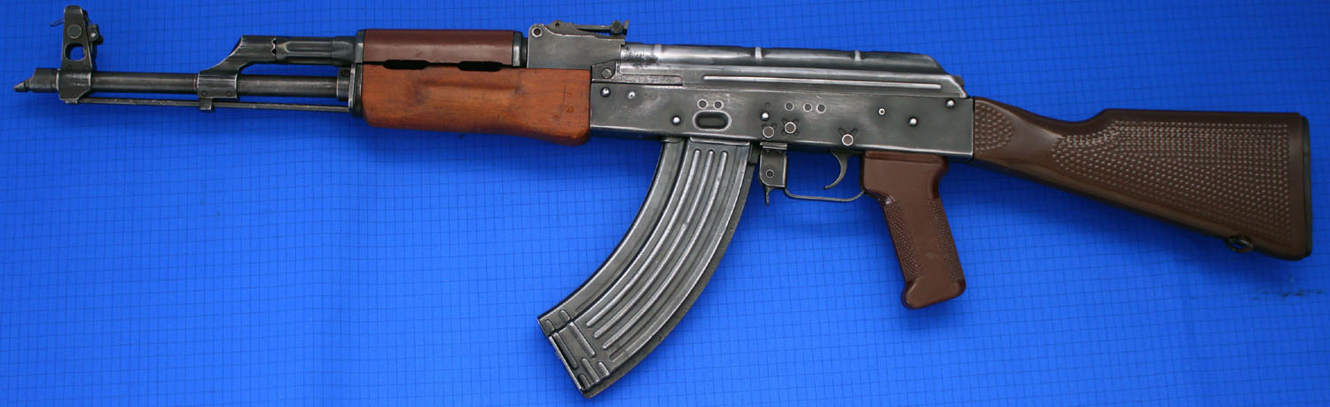| NEW SPEC DEACTIVATED 7.62MM EAST GERMAN AKM47 RIFLE in very good order with signs of use to original metal work finish with some dings/dents to fitted plastic/woodwork. Comes complete with correct fitted butt, pistol grip and upper handguard, cleaning rod and 30 shot magazine. Deactivated with some moving parts, including trigger only and is part strippable. The bolt and fire selector are both welded, currently at proof house for re-cert. Conditions apply or can be re-deactivated to current standards at extra cost, trade or px welcome, WhatsApp me for further pictures. Priced | SOLD |