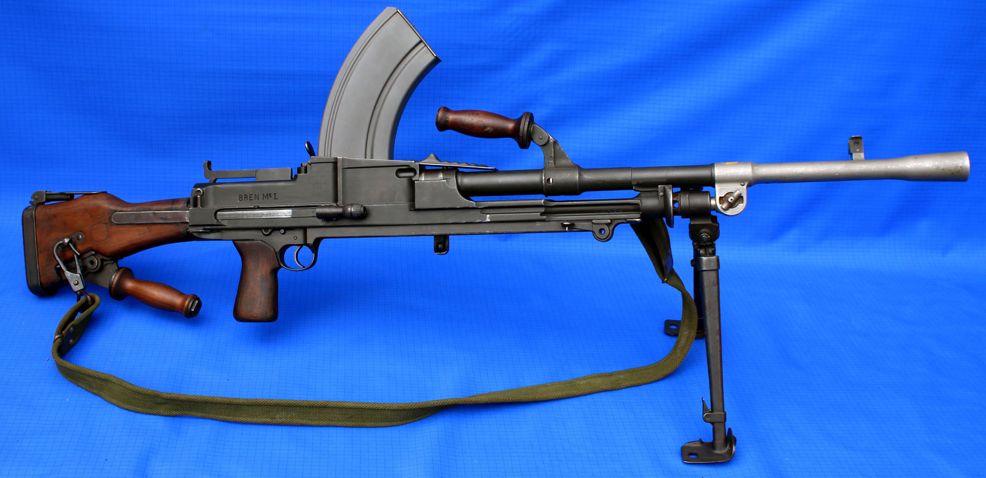 | SCARCE UK SPEC DEACTIVATED .303CAL MK1 'DOVE TAIL' BREN GUN in stunning condtion throughout with some signs of use to the metal work finish and fitted wood work. Dated 1938 with Kings Crown to receiver this example comes complete with some matching numbers, correct sling, reprodution AA handle and original MK1 butt plate and spoon, marked 'JI'. This example has been' FTR'd at some point as most of these examples were so does have a few MA marked parts, this was very common and hence it's condition. Deactivated with full working actions and can be stripped down, buyer to arrange postage or collection. Conditions apply or can be re-deactivated to current standards at extra cost, trade or px welcome, WhatsApp me for further pictures. Priced | £2500.00 |