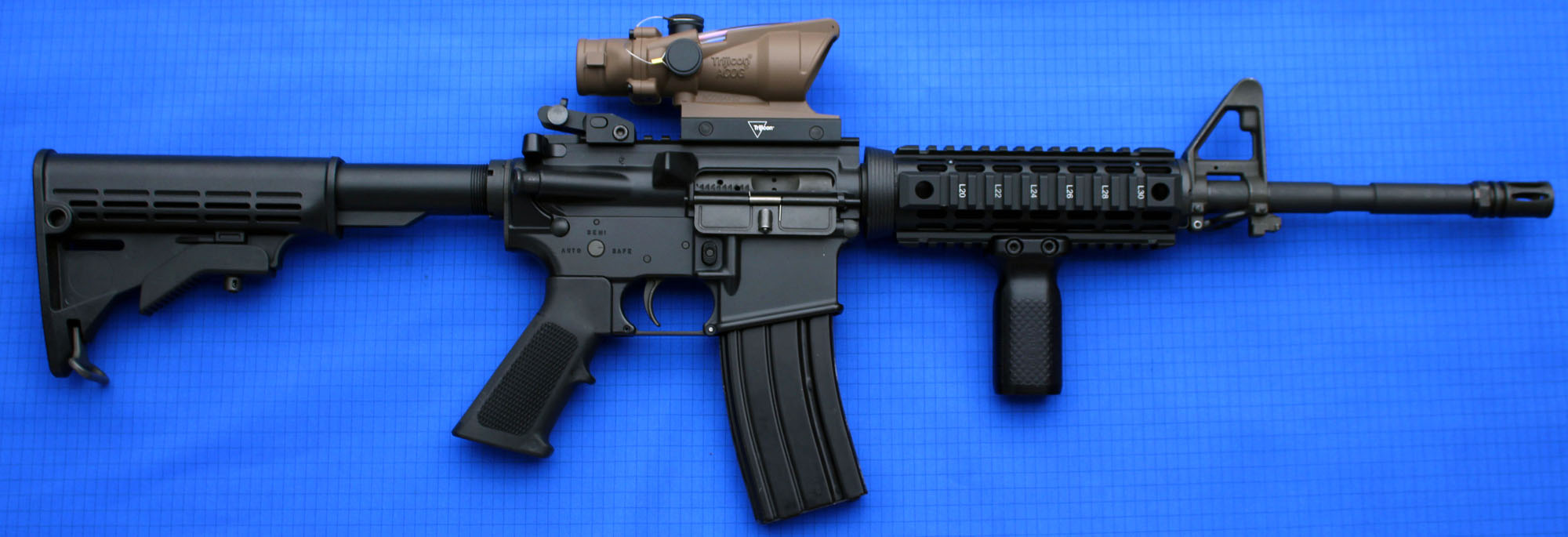 | NEW SPEC DEACTIVATED 5.56MM M16A1 RIFLE in super condition showing some sign of use to the original metal work finish, with 'undamaged' fitted plastic furniture! Comes complete with correct 20 shot box magazine, canvas sling and is deactivated with a moving charging handle (welded solid) no other moving parts. Priced. | SOLD |